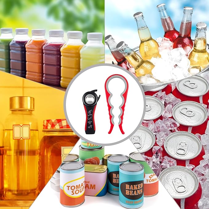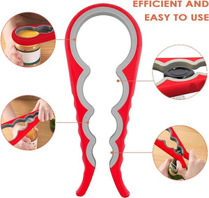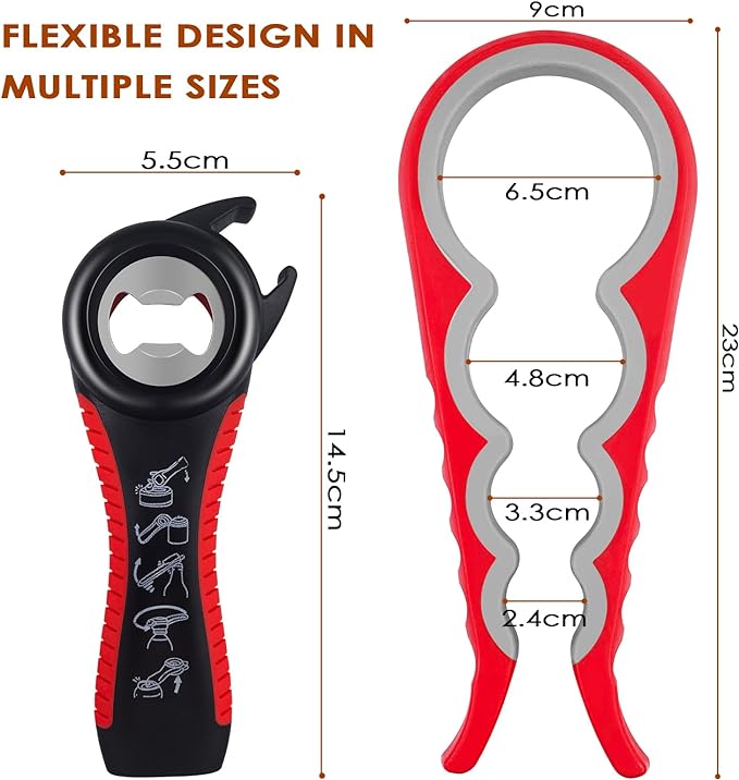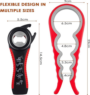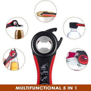 Abridor de Tarros, Latas, Botellas 5 en 1 y 4 en 1 Multifunción ideal para Personas Mayores y Manos Débiles y Sufridores de Artritis