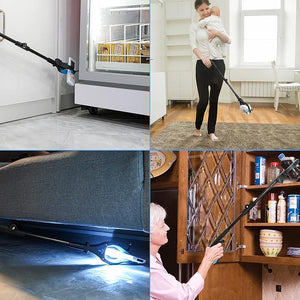 El cabezal gira 360° en incrementos de 90° para alcanzar fácilmente lugares difíciles, como detrás de muebles o la nevera. Su material antideslizante te permite recoger objetos lisos, como botellas o vidrio, de manera segura. Perfecto para personas mayores, facilita las tareas cotidianas sin esfuerzo ni incomodidad.
